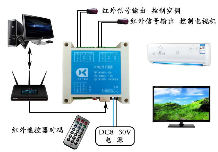 八路紅外擴展器 八路獨立通道 中控紅外擴展 智能狗編程